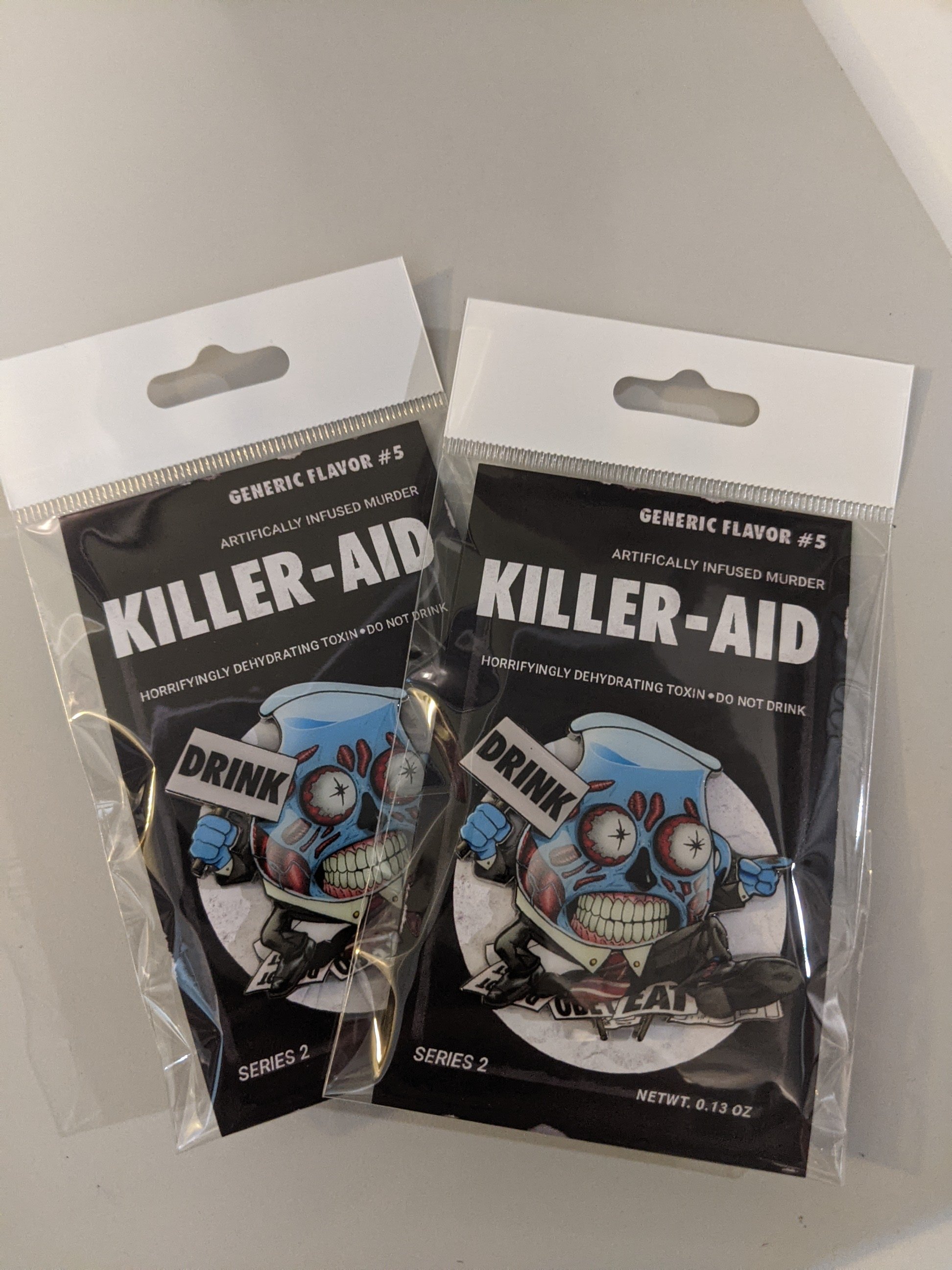 Relive the spine-tingling essence of 80s horror with our Killer-Aid Generic Flavor #5 Enamel Pin! This exclusive 2.5" high pin intricately blends the eerie charm of retro horror with a nod to iconic cultural vibes. Crafted with meticulous detail and vibrant colors through a high-quality screenprint, this limited-edition creation encapsulates the chilling allure of 80s terror and pop culture.
